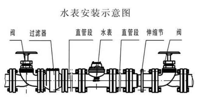 4.水表安裝時表殼上的箭頭方向必須與水流方向一致,臥式水表安裝必須水平。水表安裝位置應能避免暴曬,且便于拆卸和觀察的場所,寒冬季節(jié)應采取保溫措施。