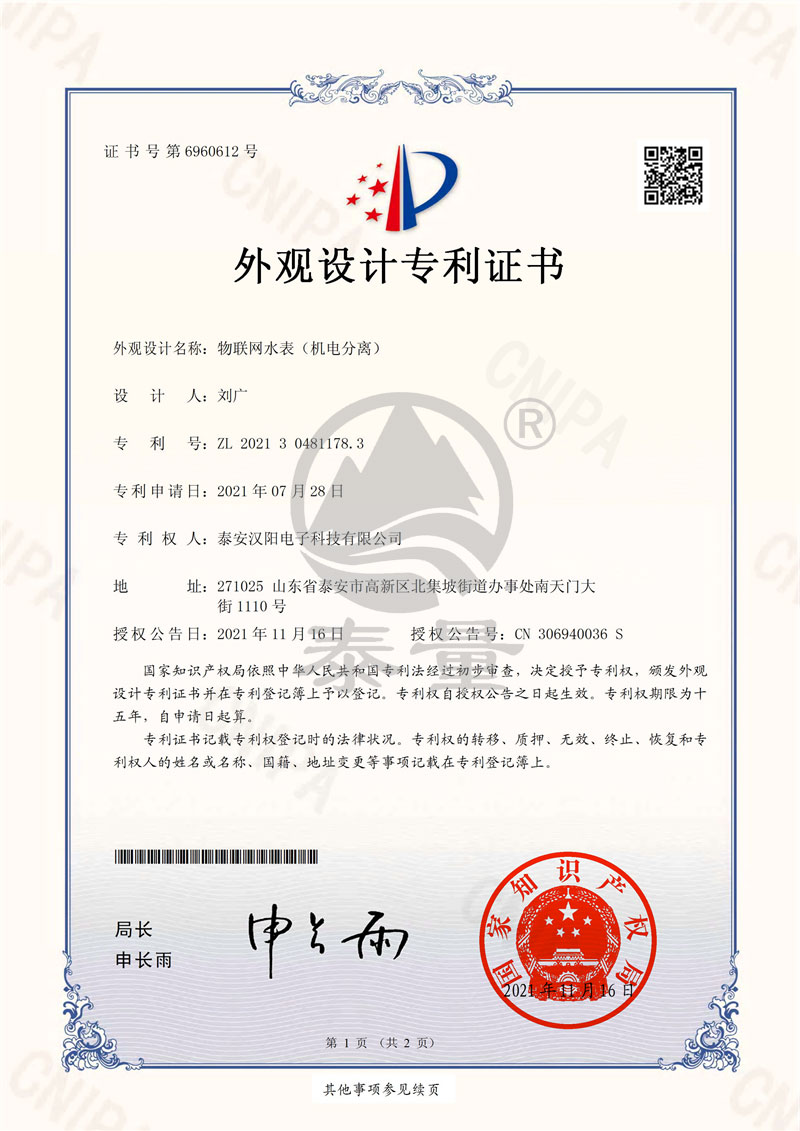 211017物聯網水表(機電分離) 證書