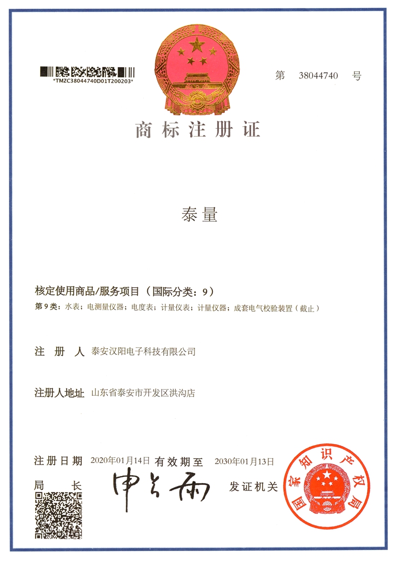 “泰量”水電表為泰安漢陽電子科技有限公司唯一品牌