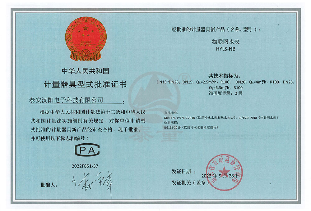 物聯網水表型評證書
